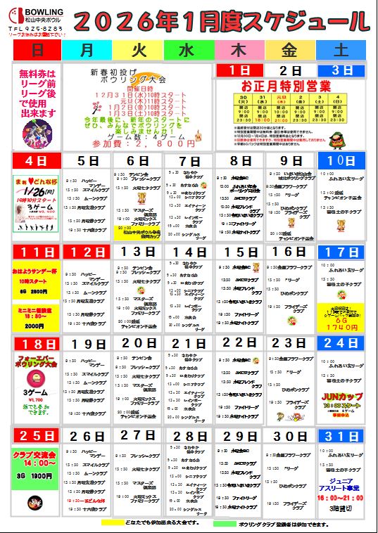 2026年1月度スケジュール